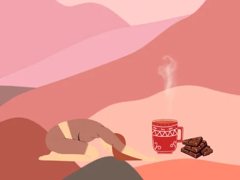 den kakao — den echten, nicht den gesüßten — gibt‘s vor dem yoga. kakao enthält antioxidantien und minderalstoffe und wirkt dadurch belebend. wir erhöhen damit unsere achtsamkeit während unserer yin yoga praxis.