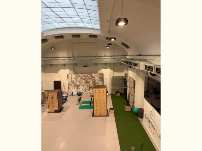 Sporthalle WienZeit für dein selbstständiges Training Trainingsfläche inklusive Kabelzug, Gewichte (Lang-/ Kurzhanteln, Kettlebells, Bälle, Sandsäcke), Ergometern, E-Gym Gerätezirkel und vielem mehr.
