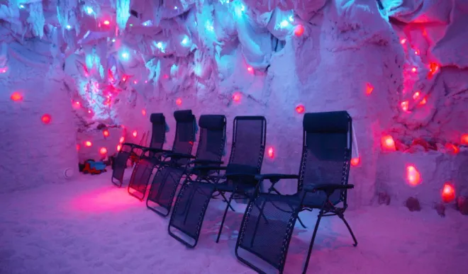 Oceaneum Salzgrotte WienTrockensalzinhalation. Die Konzentration atembaren Salzteilchen in der Luft in unserer Salzgrotte entspricht 5 mg / m³. Das ist genau so, wie in dem natürlichen Salzheilstollen. Sie entspannen sich auf den Liegestühlen und atmen tief die Salzpartikeln ein. Dank unserem Salzgenerator haben die Salzteilchen Größe 1-5 Mikronen und so können sie alle Bronchen erreichen und die Lunge auf sanfte Weise von Staubpartikeln und Allergenen reinigen.