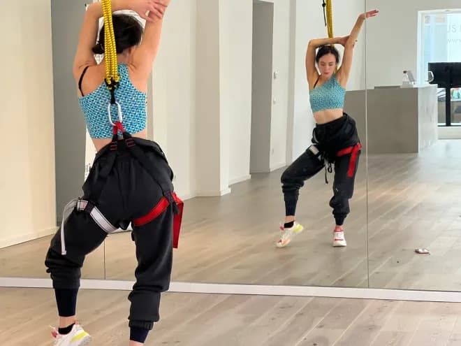 HdB Wien (Antigravity Fitness & Yoga)Bungee Dance ist eine besondere Tanzvariation des Bungee Fitness Trainings. In jeder Stunde lernen wir eine neue Choreographie zu Hits von Rihanna, Beyoncé, Ariana Grande, öfters auch Adele, wenn es etwas dramatischer zugehen soll ;) Die Bungeeseile unterstützen uns bei der Ausführung von künstlerischen Sprüngen und Drehungen, die man sonst nur von professionellen Tanzaufführungen kennt. Anfänger sind herzlich willkommen! Auf unserem Instagram @hdbwien könnt ihr in unserer Story jede Woche über den Song für die nächste Choreo abstimmen :) Bitte beachte, dass dieses Training auf Englisch abgehalten wird. Bungee Dance is a special dance variation of the classic bungee fitness training. In every lesson we learn a new choreography to hits of Rihanna, Beyoncé, Ariana Grande, sometimes Adele, if the class is supposed to be a bit more dramatic ;) The bungee cords help us to perform artistic jumps and turns, which are commonly only known from professional dance performances. Beginners are welcome!