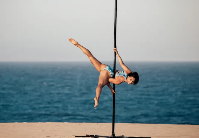 Geeignete Ausrüstung: Stelle sicher, dass du für die Pole Dance-Übungen eine geeignete und sichere Pole verwendest. Überprüfe regelmäßig, ob die Pole stabil und sicher befestigt ist.
