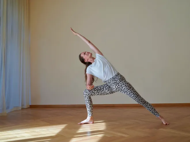 Ich unterrichte sowohl Pre- als auch Postnatal Yoga und begleite Mütter als Doula während der Geburt und im Wochenbett als Postpartum Doula und Mütterpflegerin. Mein Tipp für Yoga in der Schwangerschaft ist, sich nicht beweisen zu wollen, dass man auch schwanger noch Yoga machen kann, sondern Prenatal Yoga als Geburtsvorbereitung zu nutzen, sowohl körperlich als auch mental. Höre und vertraue den Signalen deines Körpers. Du weißt am besten, was du brauchst.“